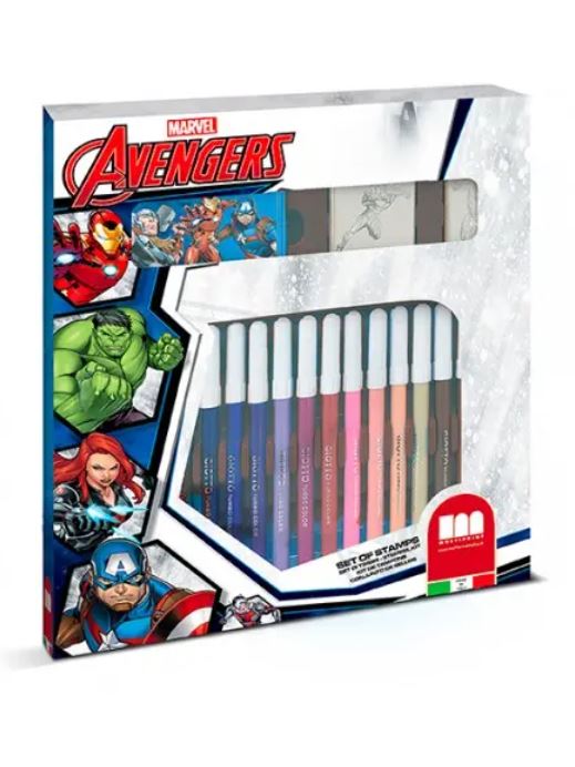 •مجموعة فنية كاملة من Avengers: تأتي مع 18 قلمًا من أقلام التحديد، و2 طابعات ذات طابع Avengers، ووسادة حبر لإبداع لا نهاية له.