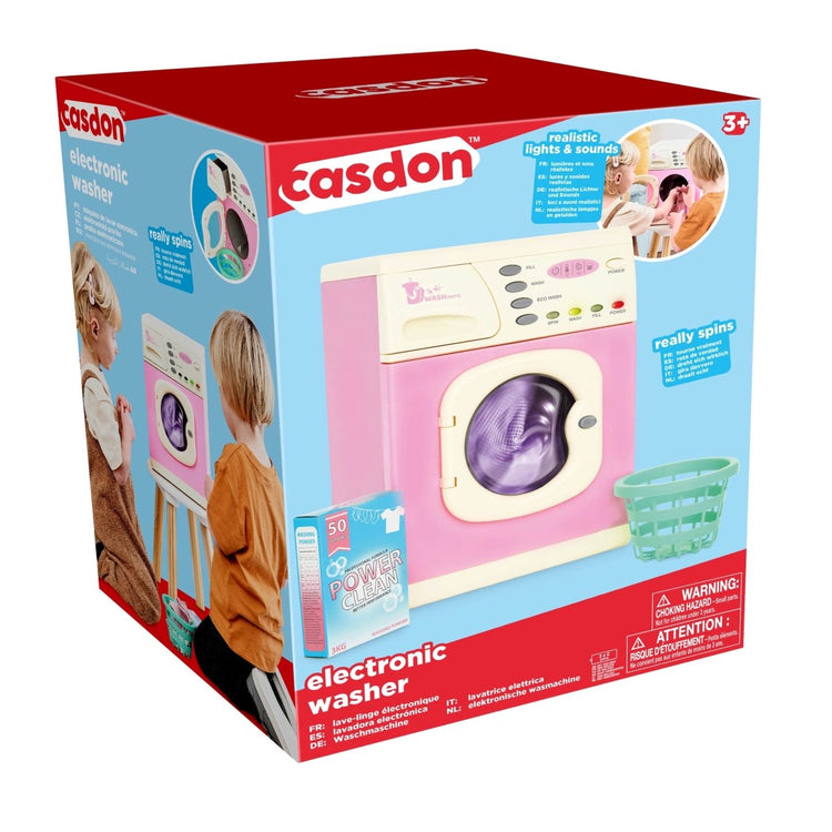 غسالة كاسدون الإلكترونية هي الإضافة المثالية لأي غرفة غسيل (سواءً كانت حقيقية أو خيالية!)، ومع العديد من الميزات الموفرة للطاقة، سيشغل أطفالكم ساعات طويلة! إذا كنتم تبحثون عن شيء يُقنعكم بأن غسل الملابس ممتع، فهذه الغسالة الإلكترونية هي الحل الأمثل.