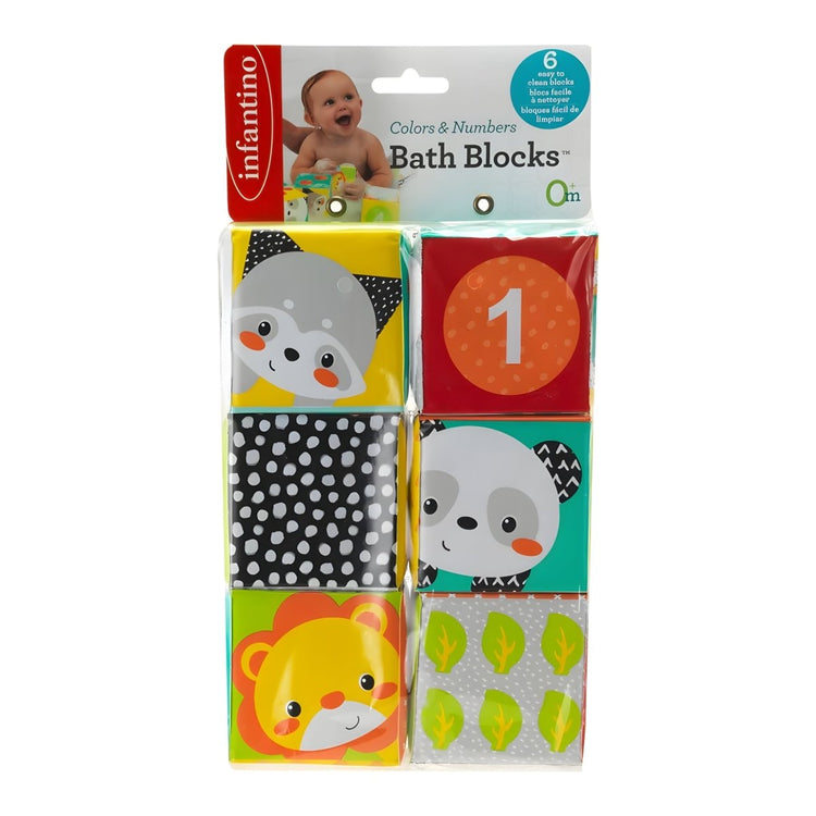 مكعبات الاستحمام "ألوان وأرقام" من إنفانتينو ستكون بلا شك المفضلة لدى طفلك وقت الاستحمام. استمتع بالمرح مع هذه المكعبات الناعمة والنابضة بالحياة! سيحب طفلك استكشاف الحيوانات والأرقام والعد والألوان والأنماط. هذه المكعبات مثالية للتكديس والرمي والإمساك والتعلم. استخدمها أثناء الاستحمام أو اللعب! تتضمن 3 مكعبات إسفنجية سهلة الإمساك.