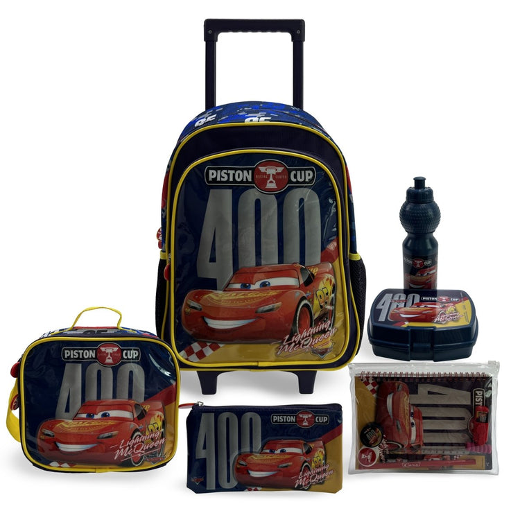 • مجموعة صندوق عربة ديزني كارز بيستون كب 6 في 1. 16 بوصة - 1 عربة، 1 حقيبة غداء، 1 حافظة أقلام، 1 صندوق غداء، 1 زجاجة مياه، 1 مجموعة زيبلوك.