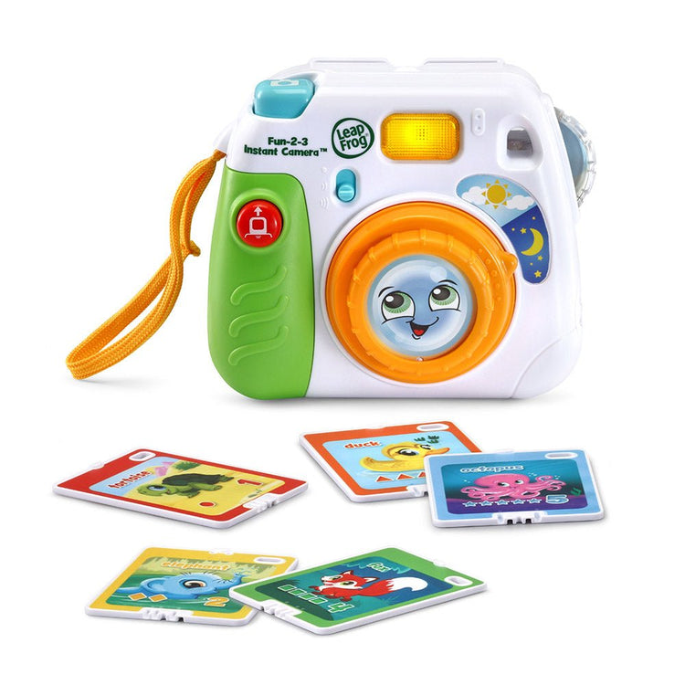 كاميرا Fun-2-3 الفورية. مثالية لتشجيع الصغار على تصوير العالم من حولهم، مع تعزيز مهاراتهم الحركية الدقيقة. مزودة بخمس بطاقات صور لتعليمهم كل ما يتعلق بالحيوانات والأرقام والألوان والأشكال. ما عليك سوى وضع البطاقة، والضغط على الزر، والنظر عبر عدسة الكاميرا لاكتشاف عالم جديد.