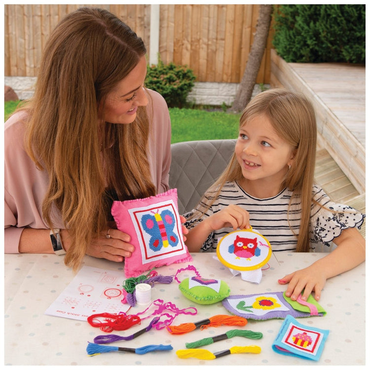 اصنع وسادة فراشة، وصورة بومة، وقلبًا معطرًا، وقلمة زهور، ودفتر إبر كب كيك. ببساطة، خيط الصورة بخيوط متقاطعة، مع مطابقة لون الخيط مع الأجزاء الملونة على القماش. مثالية.