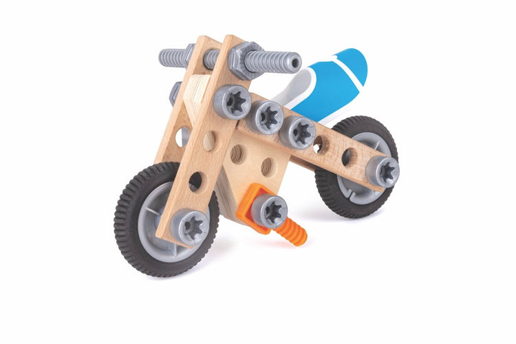 استخدم التعليمات المرفقة لبناء واحدة من أربع دراجات نارية، أو يمكن للأطفال استخدام خيالهم لبناء مركبة أحلامهم! تتضمن المجموعة أجزاءً خشبية وبلاستيكية، وعجلات، وصواميل، ومسامير، ومفك براغي، ومفتاح ربط، وحقيبة حمل. الأدوات آمنة وسهلة الاستخدام لأيدي الأطفال. سيحبون تقليد سلوك الكبار والمشاركة في لعب الأدوار.