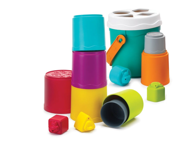 متعة لا نهاية لها في المتجر مع دلاء التكديس والعش لفرز الأشكال. مكتملة بـ 10 أكواب تكديس في قوس قزح من الألوان بالإضافة إلى 4 قطع فرز الأشكال للمطابقة والدفع، توفر هذه اللعبة للأطفال الصغار بعمر 6 أشهر فما فوق وفرة من الخيارات الممتعة. يمكن للأطفال الصغار اللعب في أي مكان تقريبًا يختاره الآباء ومقدمو الرعاية من المطبخ إلى الحمام، في الداخل والخارج. تتيح دلاء التكديس والعش المريحة لفرز الأشكال سهولة السفر. متينة ومشرقة ومبهجة ومثيرة للتفكير، شاهد فضول طفلك ينمو مثل أكوام البرج أو بعمق مثل محتويات الدلاء. تجعل Infantine وقت اللعب ممتعًا وسهلاً للآباء والأطفال - حيث توفر منتجات حديثة وآمنة ومبتكرة تجمع بين التعلم والفرح. نضع شغفًا كبيرًا في منتجاتنا. تم تصميم كل لعبة للطفل والوالد لتجربة وإنشاء ذكريات مدى الحياة. نحن نهتم بسعادة ورفاهية الأشخاص الصغار؛ لذلك، فإن السلامة والثقة ذات أهمية قصوى بالنسبة لنا.
