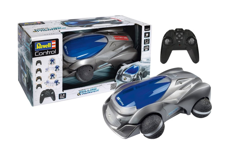 سيارة ريفيل كونترول ريموت كنترول المستقبلية، رولينج ثاندر، هي السيارة النموذجية المثالية لجميع عشاق السباقات الراغبين في خوض غمار متعة القيادة عن بُعد. بفضل تصميمها المستقبلي الرائع وتقنيات القيادة المتطورة، تقدم تجربة قيادة من الجيل التالي.