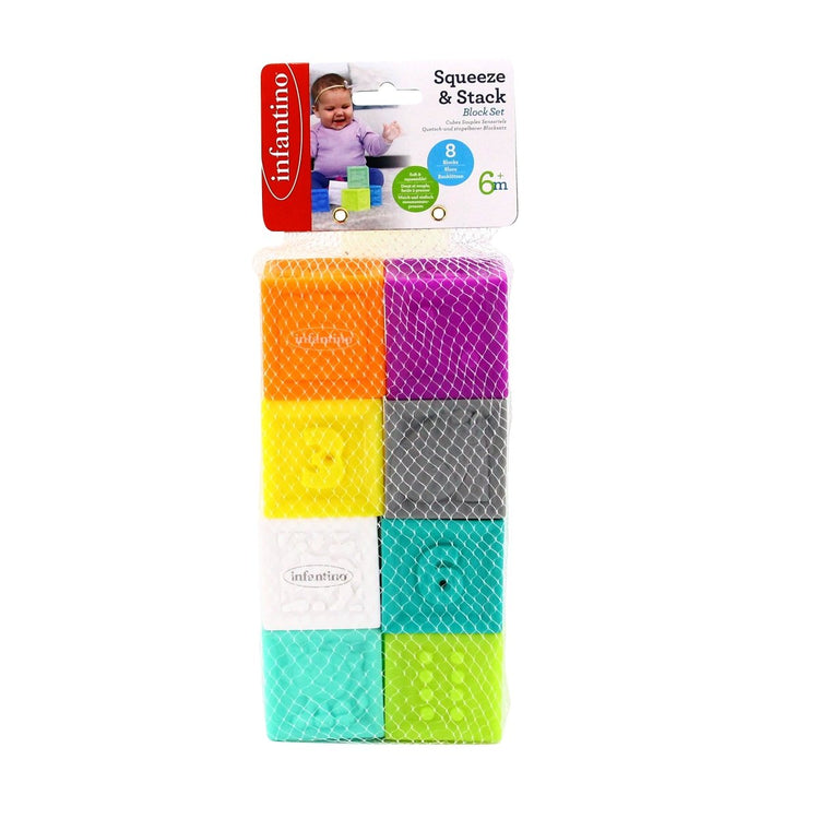 رصّ، أو اضغط، أو عضّ على ثماني مكعبات ملونة ومزخرفة. هذه المكعبات الناعمة والطرية مثالية للأيدي الصغيرة. يتميز كل جانب بمشهد مختلف وجذاب، بما في ذلك حيوانات أليفة وأرقام من 1 إلى 8. تتضمن حقيبة حمل قابلة لإعادة الاستخدام، مثالية للسفر أو وقت التنظيف!