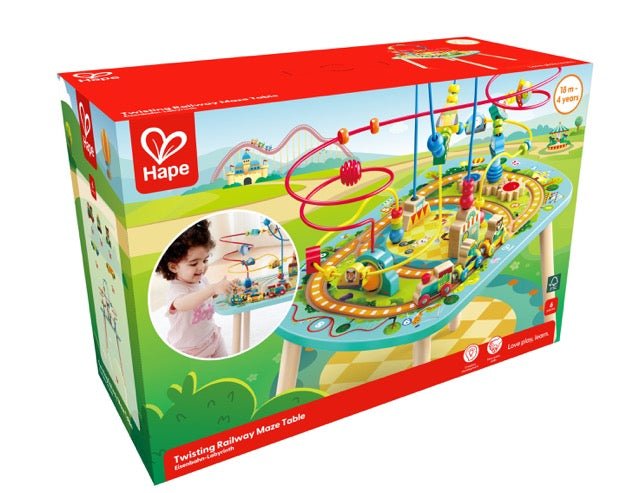طاولة متاهة السكة الحديدية الملتوية من Hape هي مجموعة ألعاب تفاعلية وجذابة مصممة للأطفال من سن 18 شهرًا وما فوق.