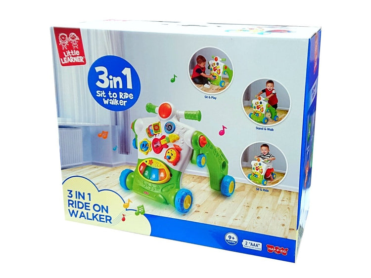 Little Learners 3 in 1 Ride-On Walker - Sit, Stand, Ride, Removable Piano, Interactive Dashboard, Durable Design, 9M+