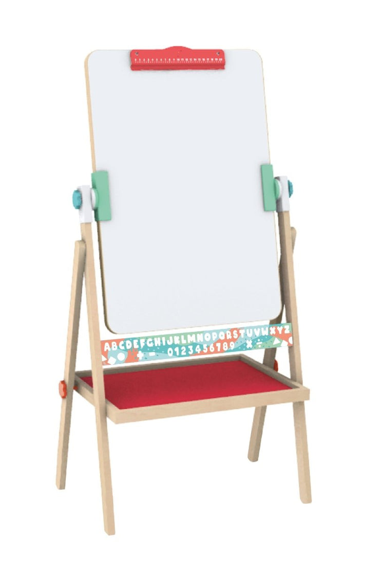 Hape's Flip Flat Wooden Easel is the ultimate arts and crafts toy for kids. Flip the double-sided easel with a whiteboard on one side to reveal on the other side, a chalkboard - both are ideal for drawing or learning and clean easily.