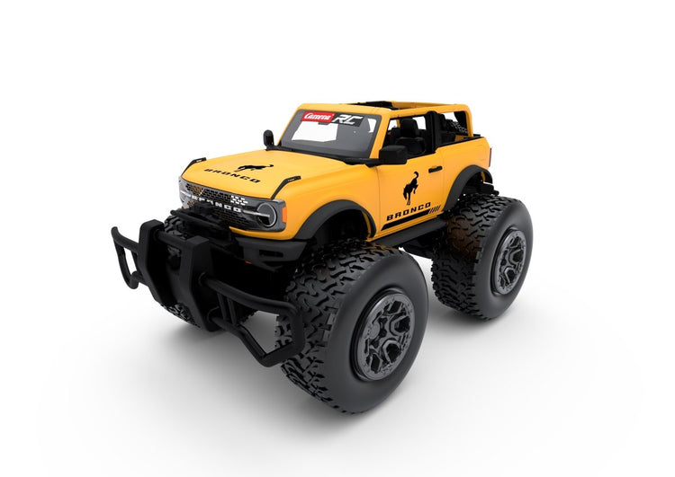 This US American offroad dream has been reawakened by Carrera RC, and its adventures can now be relived. From the 1960s on the sharp and powerful-looking Ford Bronco was the king of the roads, and has returned in a new version introduced in 2020. This Carrera RC vehicle isn't just the king of the road - it's an offroad legend. The retro design work of the Carrera RC Ford Bronco features big, round headlamps, sharp, shapely coachwork and large tyres, turning heads everywhere and on all terrains - on the road, in the park and in the garden.